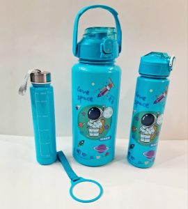 Introducing our Space-themed 3-in-1 Water Bottle with Cool Quotes, now available!. This awesome bottle is perfect for kids and grown-ups, whether you’re at school, the gym, or just having fun. It comes in four awesome colors: purple, grey, blue, and orange. What’s super cool about it is that it can hold different amounts of water. You can pick the big one with 2000ml for the whole day, the medium one with 800ml for regular use, or the small 300ml one for when you’re on the move. Plus, there are fun space pictures and motivating quotes on it to keep you inspired. Stay hydrated and excited with our Space-themed 3-in-1 Water Bottle – get yours today on Amazon India and make every sip an adventure!