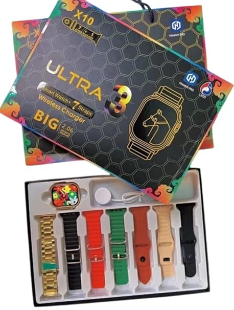 Be the first to review “Click to see full view Ultra3 x10 Smart Watch with 7-in-1 Interchangeable Straps, 2.01″ Amoled HD Display, Bluetooth Calling, Sports Mode, Fitness Tracker” Cancel reply