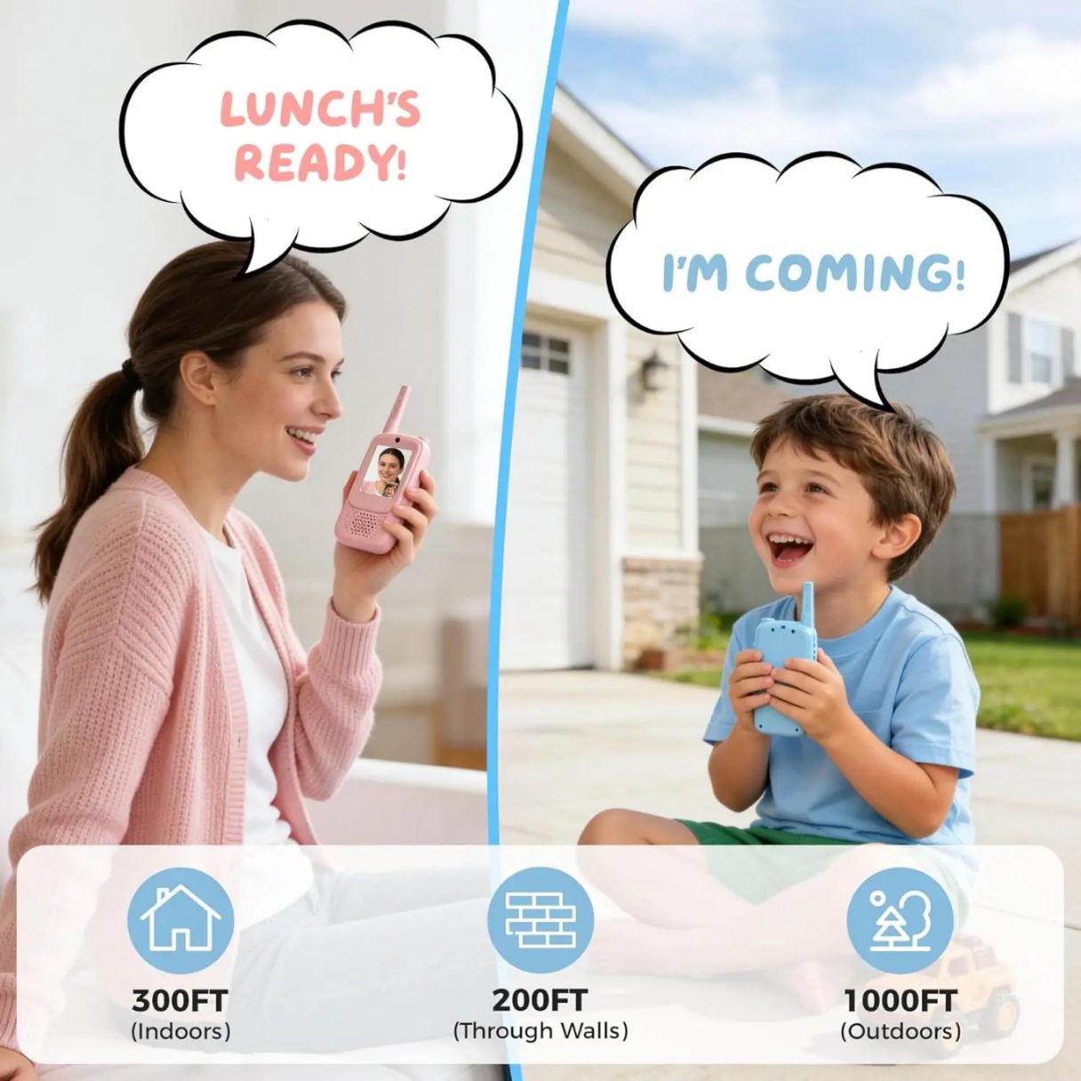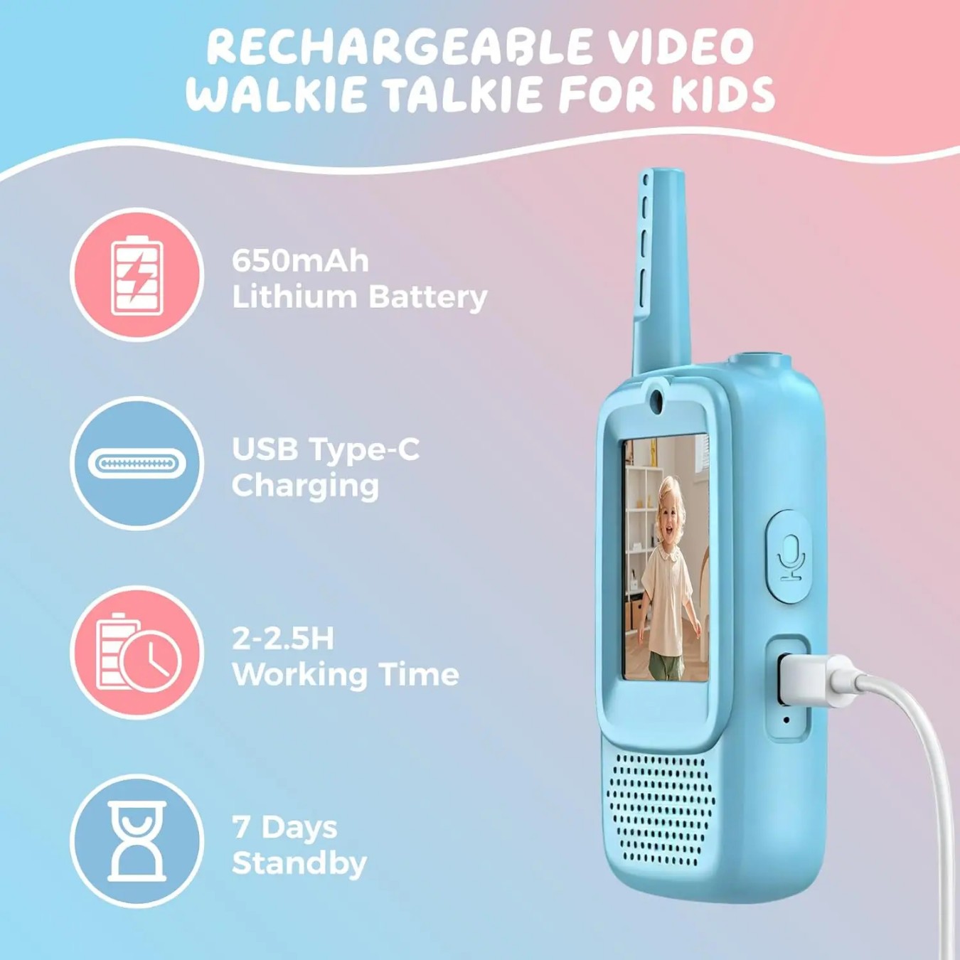1.The creative kids video calling toy phones are specifically designed for children aged 3 to 12, making it an ideal Christmas or birthday gift for kids who love outdoor activities, fostering a sense of independence and adventure. 2.With an impressive 1500 ft (457m) talk range, this two-way video calling toy phones allows children to communicate with friends up to a quarter-mile distance, perfect for socializing, exploring, or playing outdoors without limitations. 3.The robust and durable product, made in G China, utilizes 500-1000mAh battery capacity, ensuring a long-lasting performance that can withstand the demands of outdoor play and withstand wear and tear over time. 4.The unique feature of this video calling toy phones is its cool voice effects, adding an element of fun and excitement to kids’ conversations with friends, making playtime even more engaging and enjoyable. 5.This innovative product is ideal for parents who are concerned about the safety of their children when they are playing outside. With its wide frequency range of Wi-Fi, parents can easily locate their children and monitor their activities from a distance. 6. The MY200 model boasts an output power of 0.5 watts, allowing children to communicate with friends even in noisy outdoor environments. 7. The video calling toy phones includes customizable packaging, making it the perfect gift for any occasion, while the option to select English as the operating language ensures that it can be easily understood by children from diverse backgrounds.